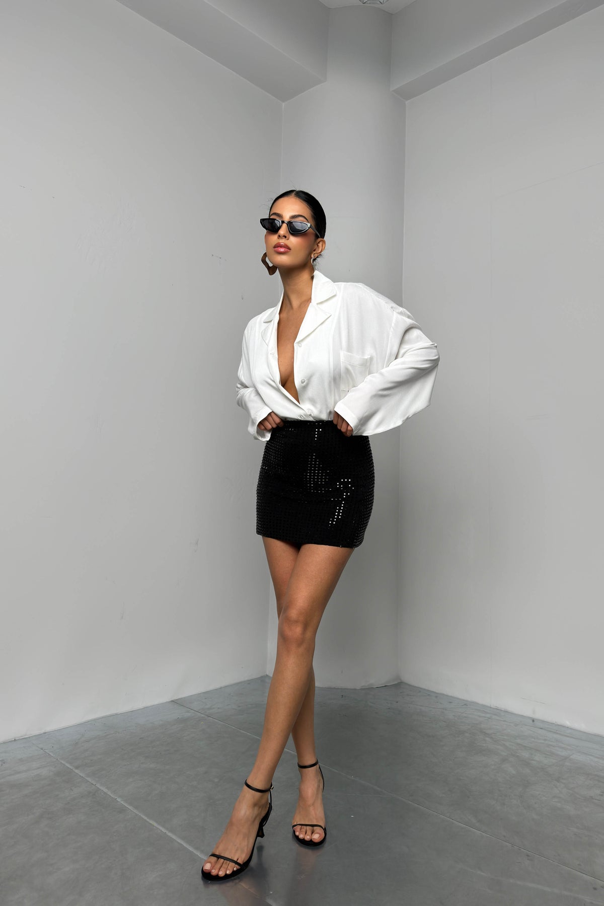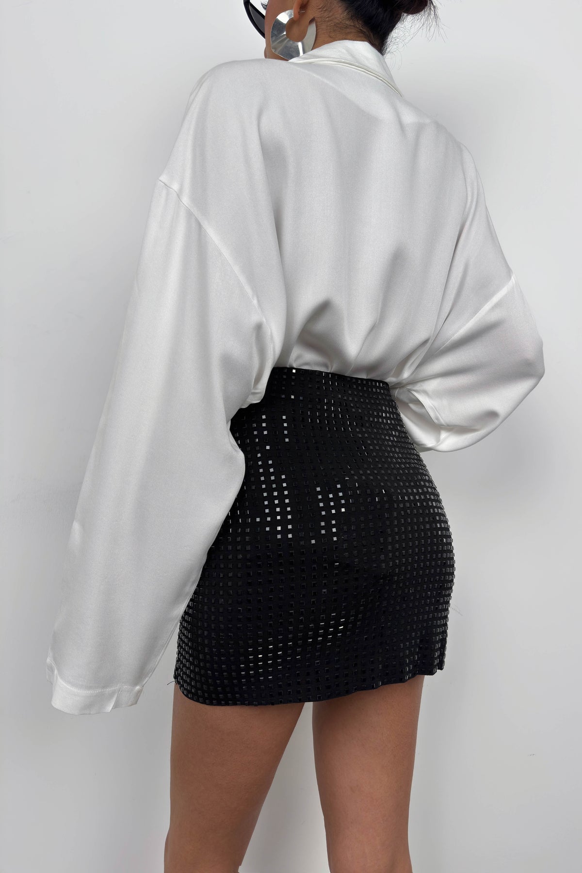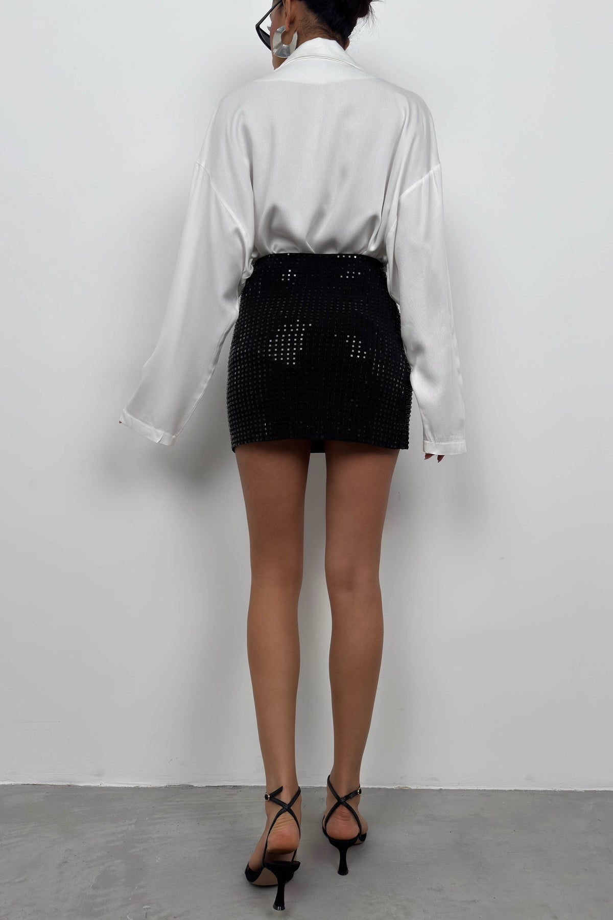 Taşlı Siyah Mini Etek