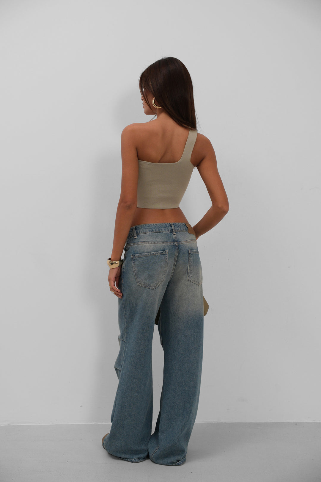 Triko, Crop, Tek Omuz, Esnek, Fashion