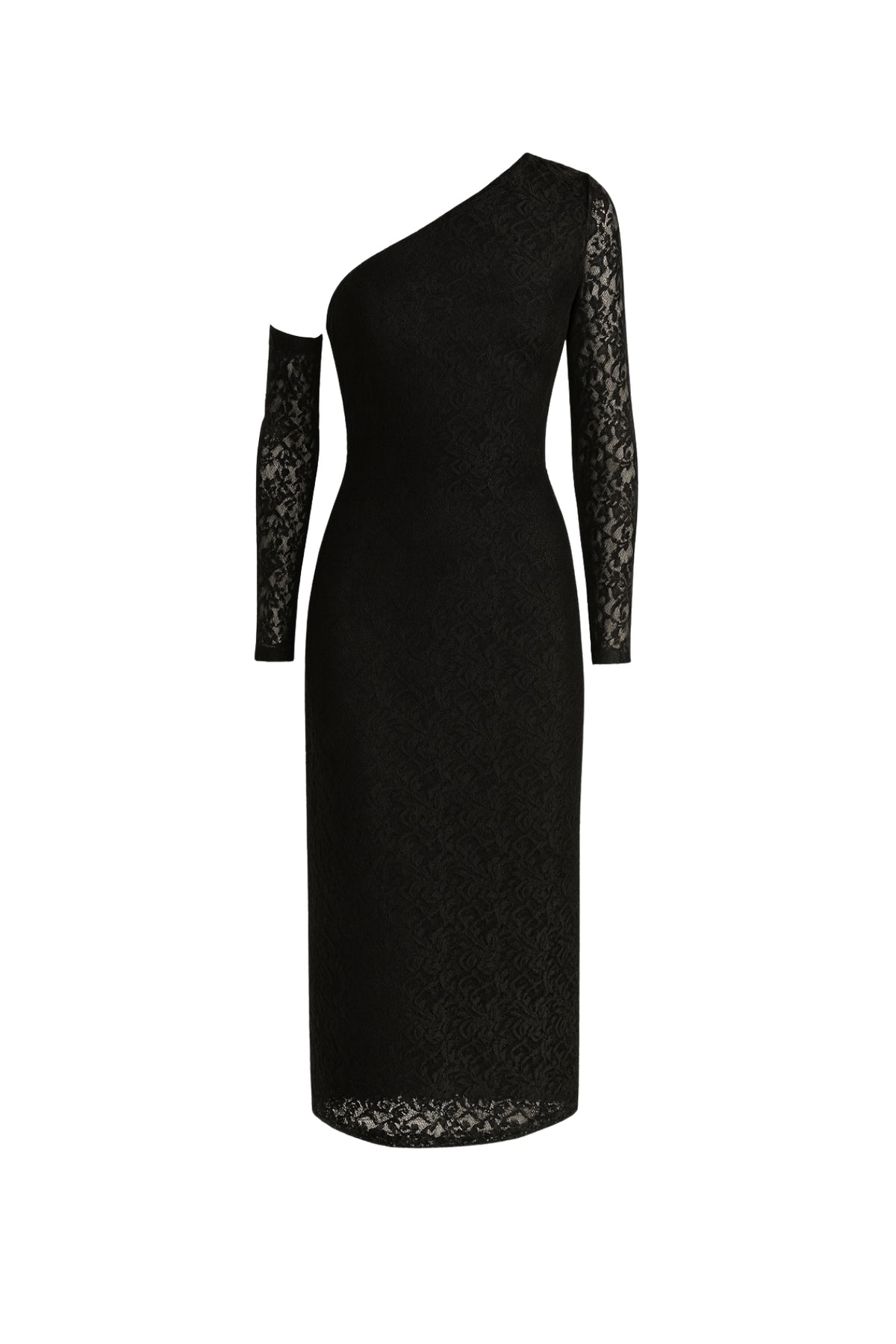 Tek Omuz Kol Aksesuar Detay Maxi Siyah Güpür Elbise