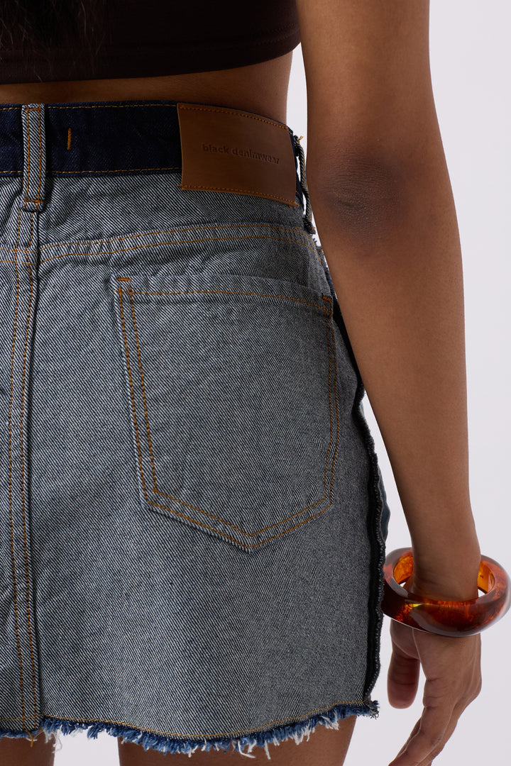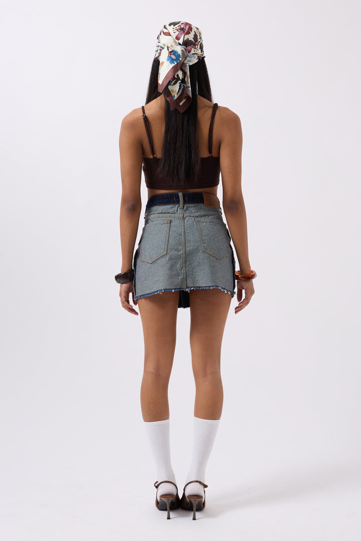 Ters Detay Denim Mini Mavi Etek