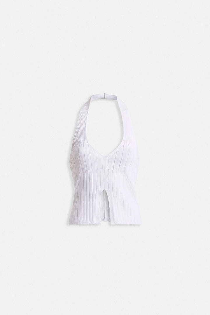 Triko Örgü, V Yaka, Likralı Esnek Dokulu, Crop Örgü Bluz