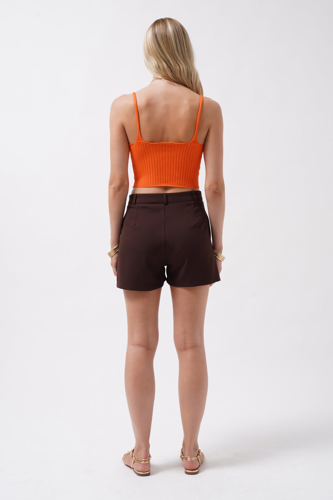 V Yaka Turuncu Crop Bluz