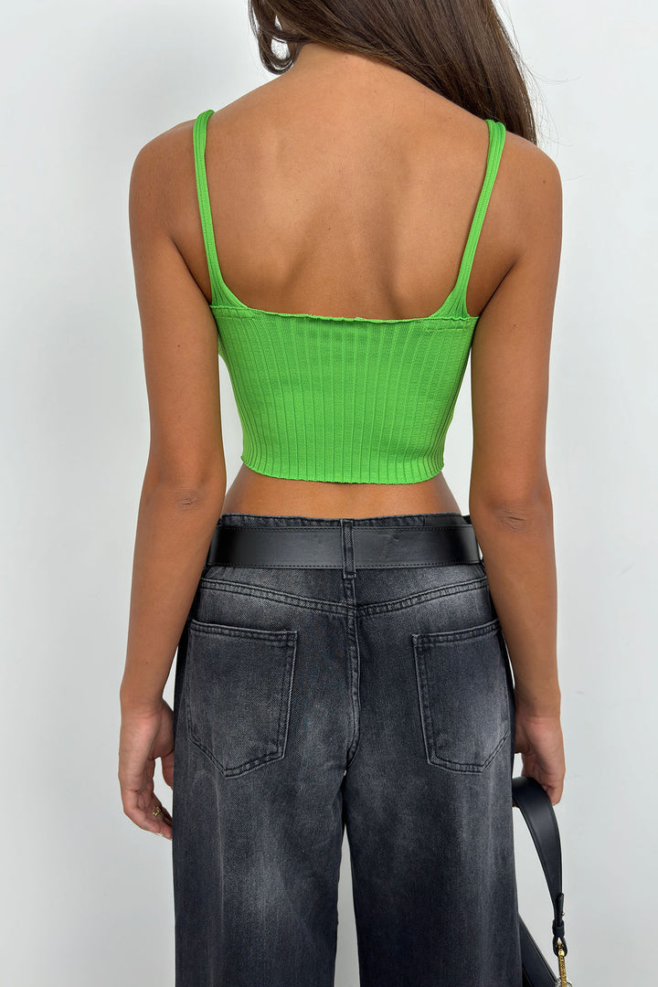 V Yaka Yeşil Crop Bluz