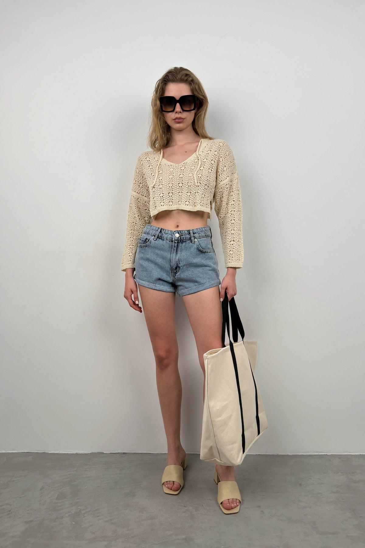 V Yaka, Örgü, Triko, Uzun Kollu, Crop, Kazak