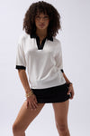 Pamuklu Kumaş, Yumuşak Dokulu, Yaka Ve Kolu Kontrast, Triko T-Shirt