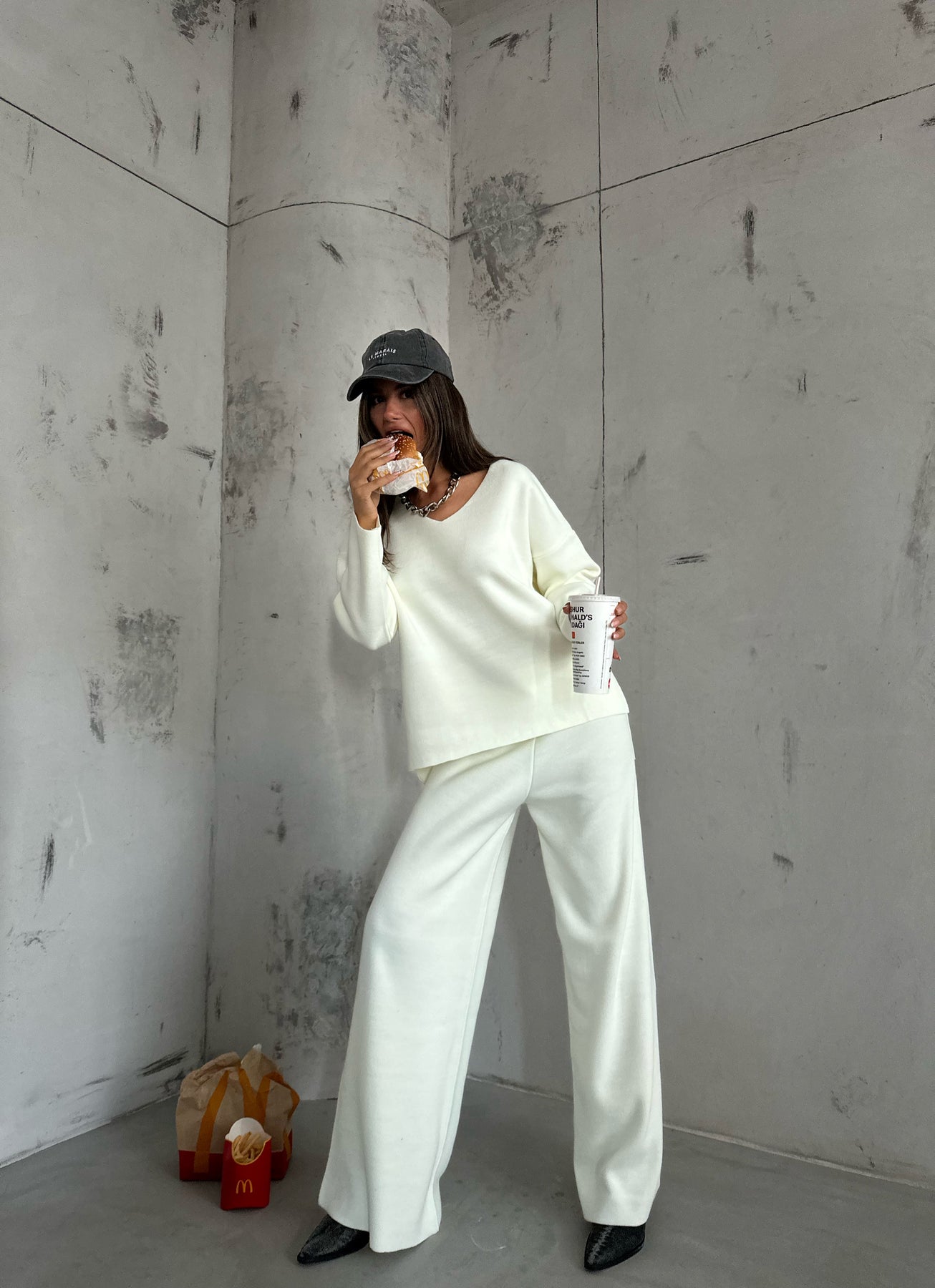 V Yaka Triko Ekru Kazak Pantolon Takım