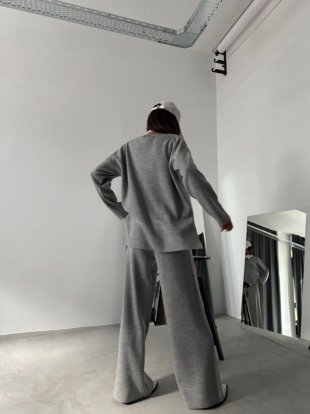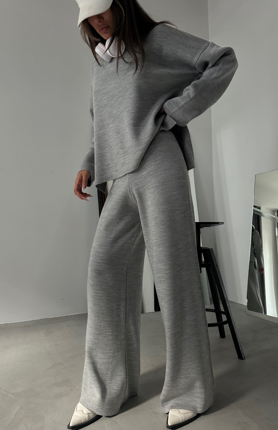 V Yaka Triko Gri Kazak Pantolon Takım