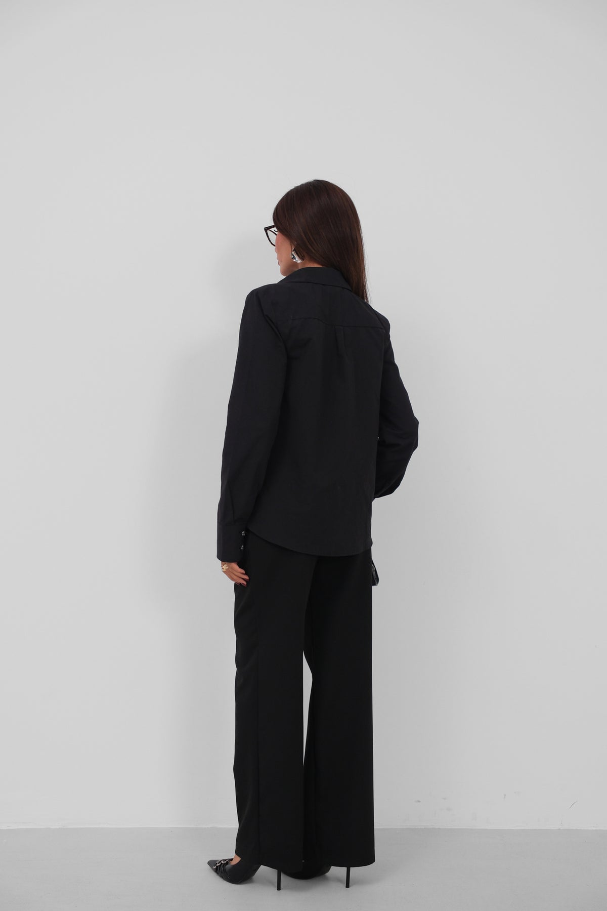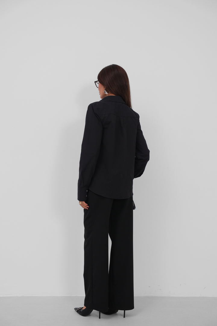 Vatkalı, Uzun Kollu, Aksesuar Detaylı, Gömlek Yaka, Düğmeli, Oversize, Gömlek
