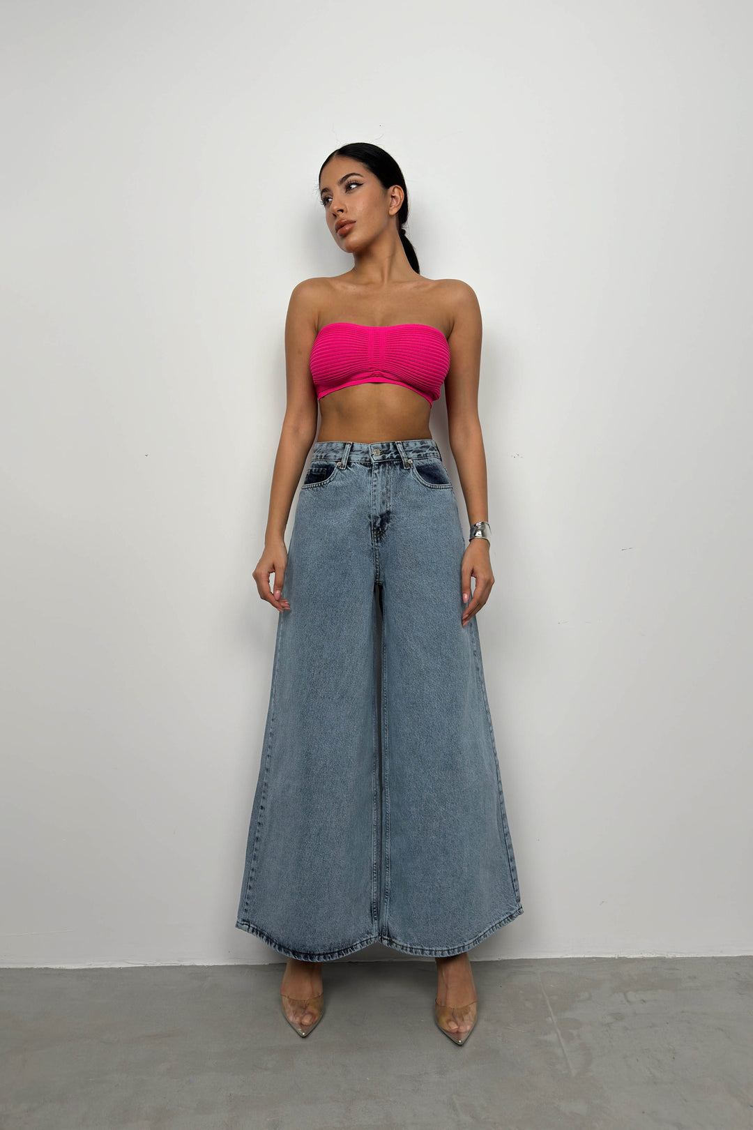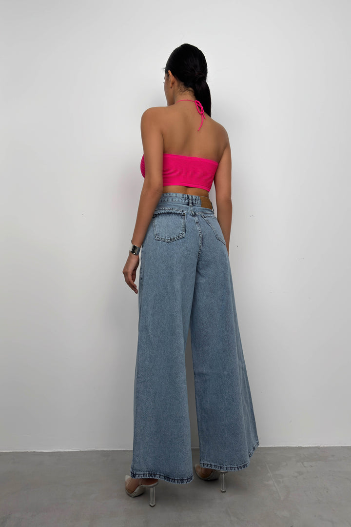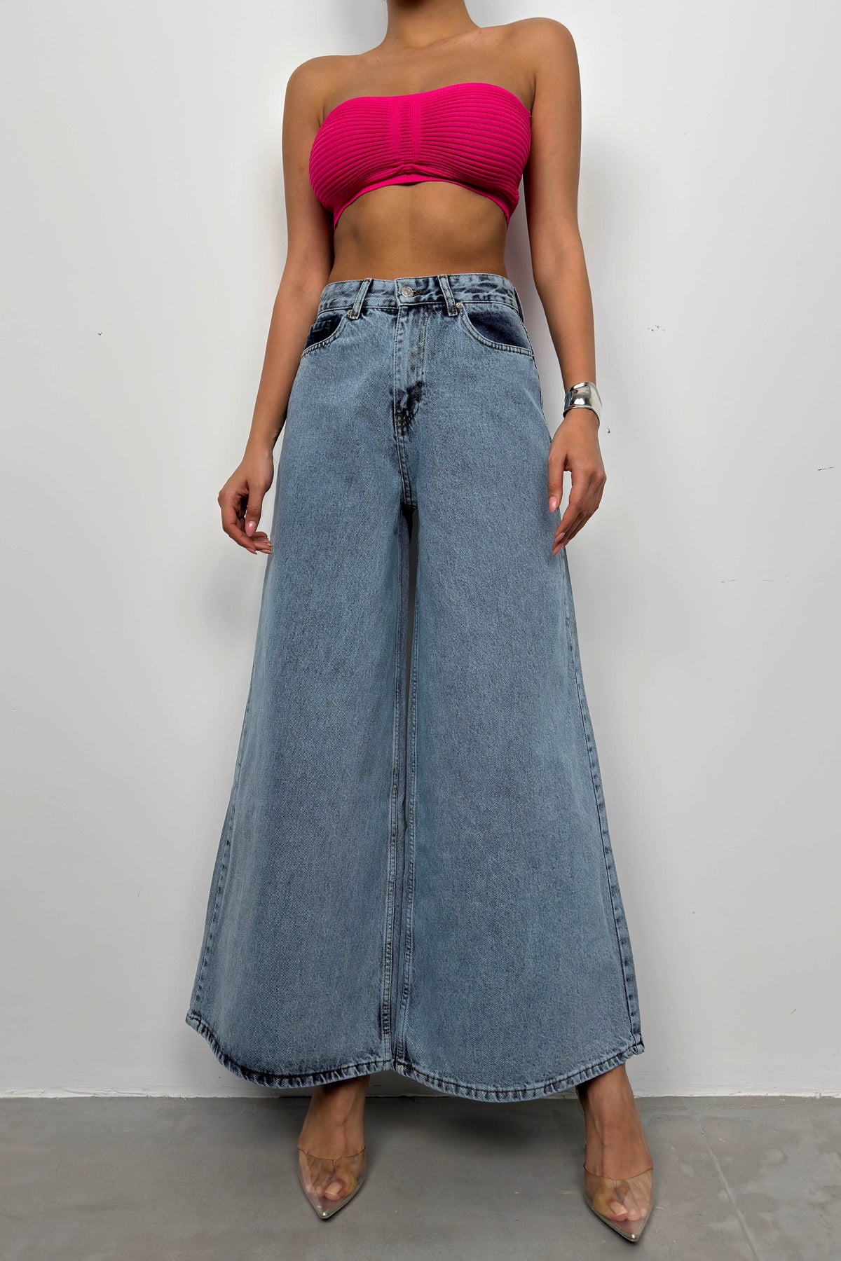 Yüksek Bel, Çok Geniş Paça, Cepli, Jean