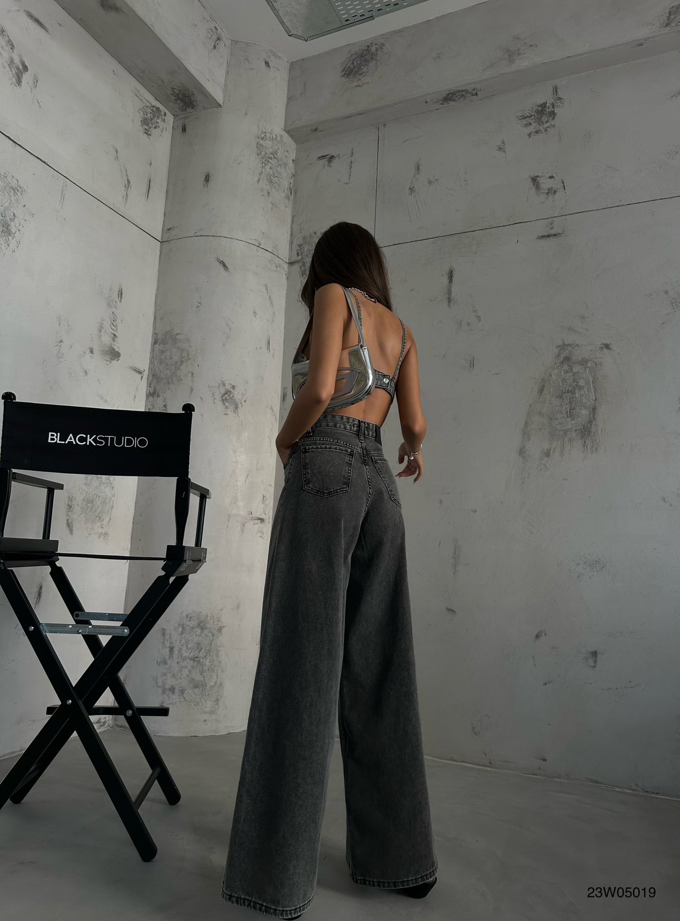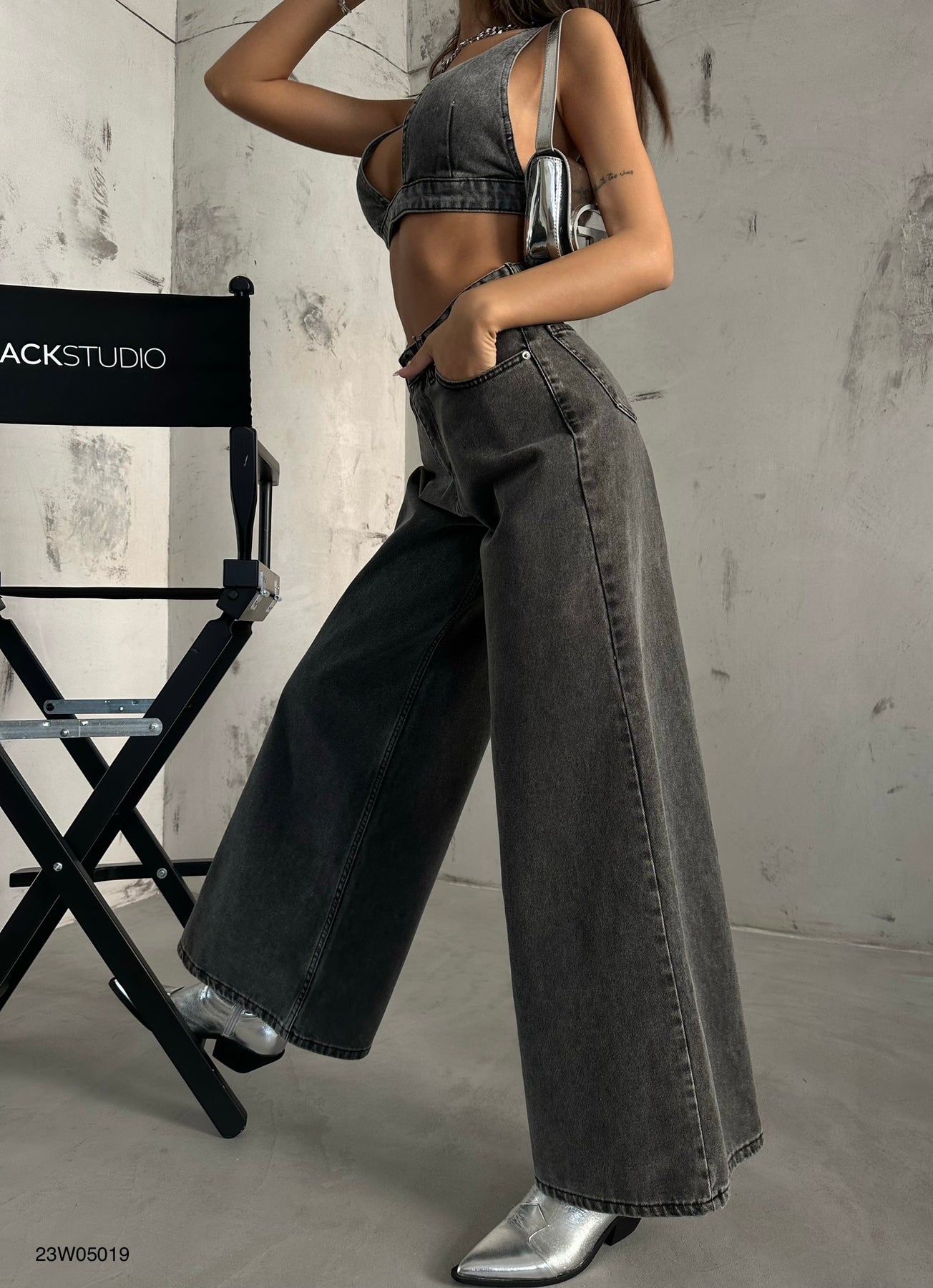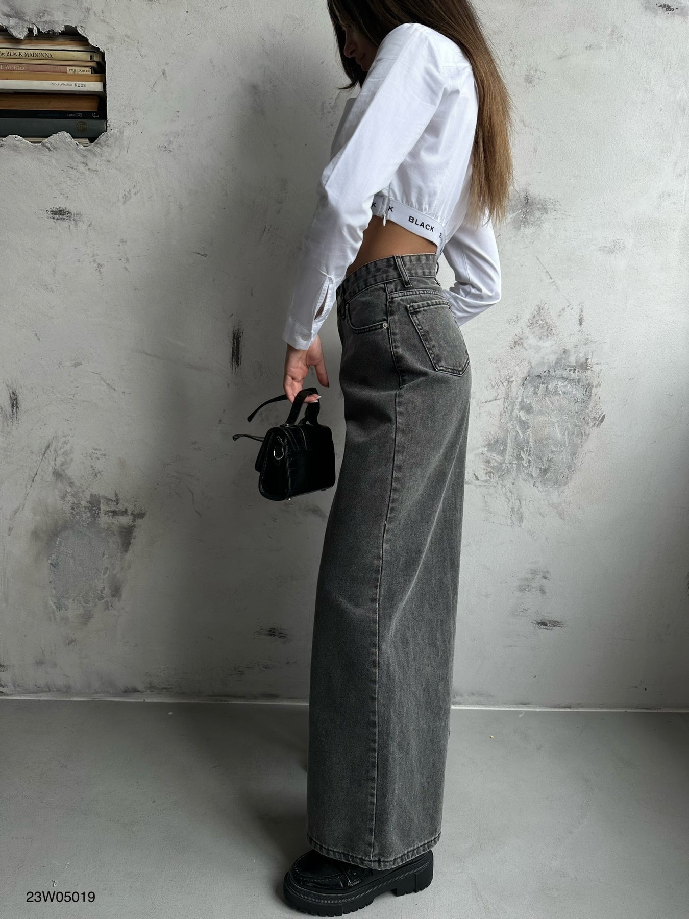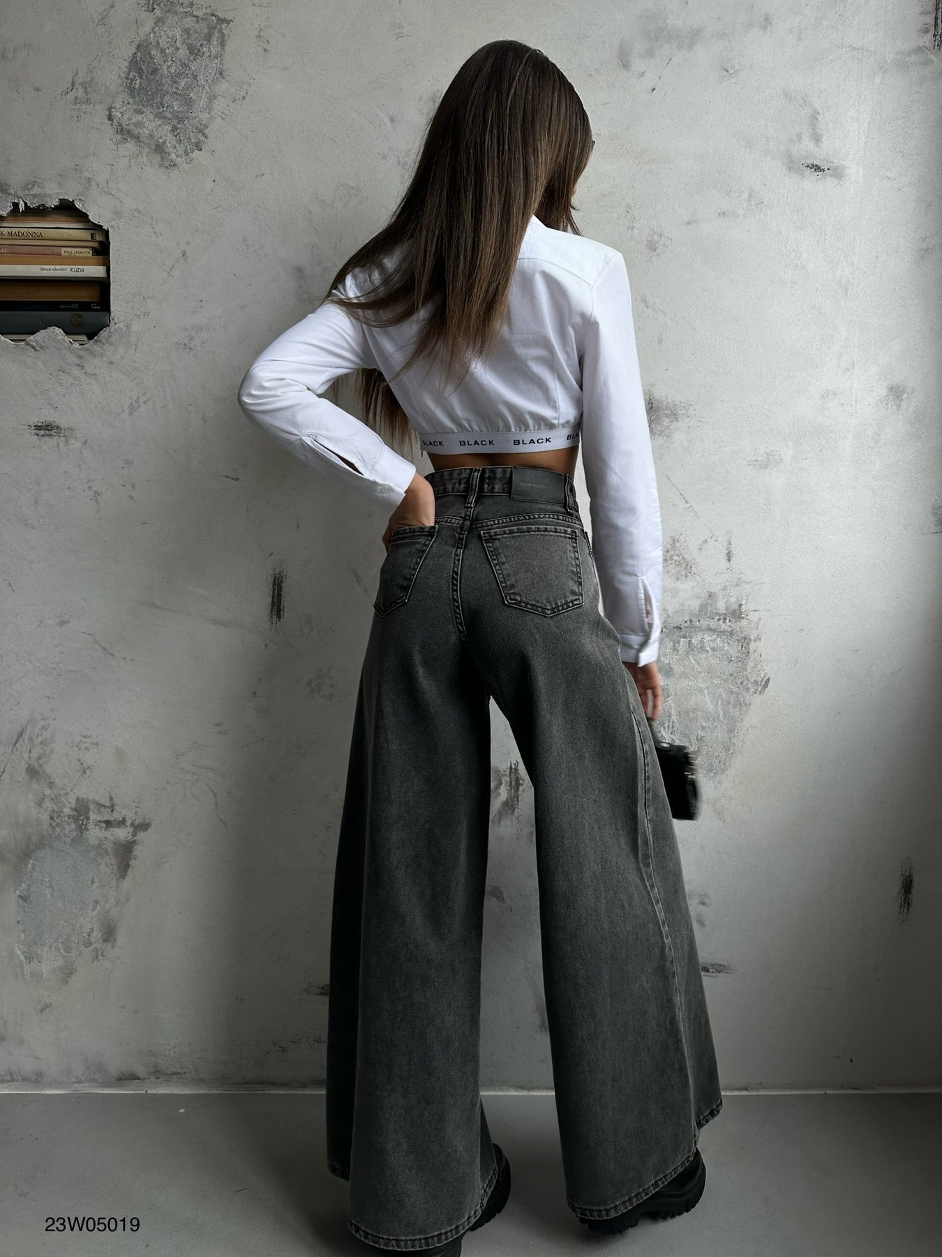 Yüksek Bel, Çok Geniş Paça, Cepli, Jean