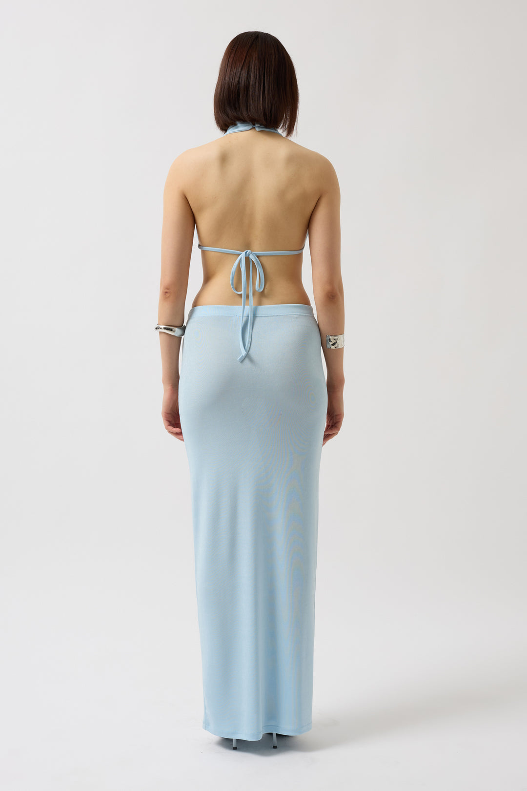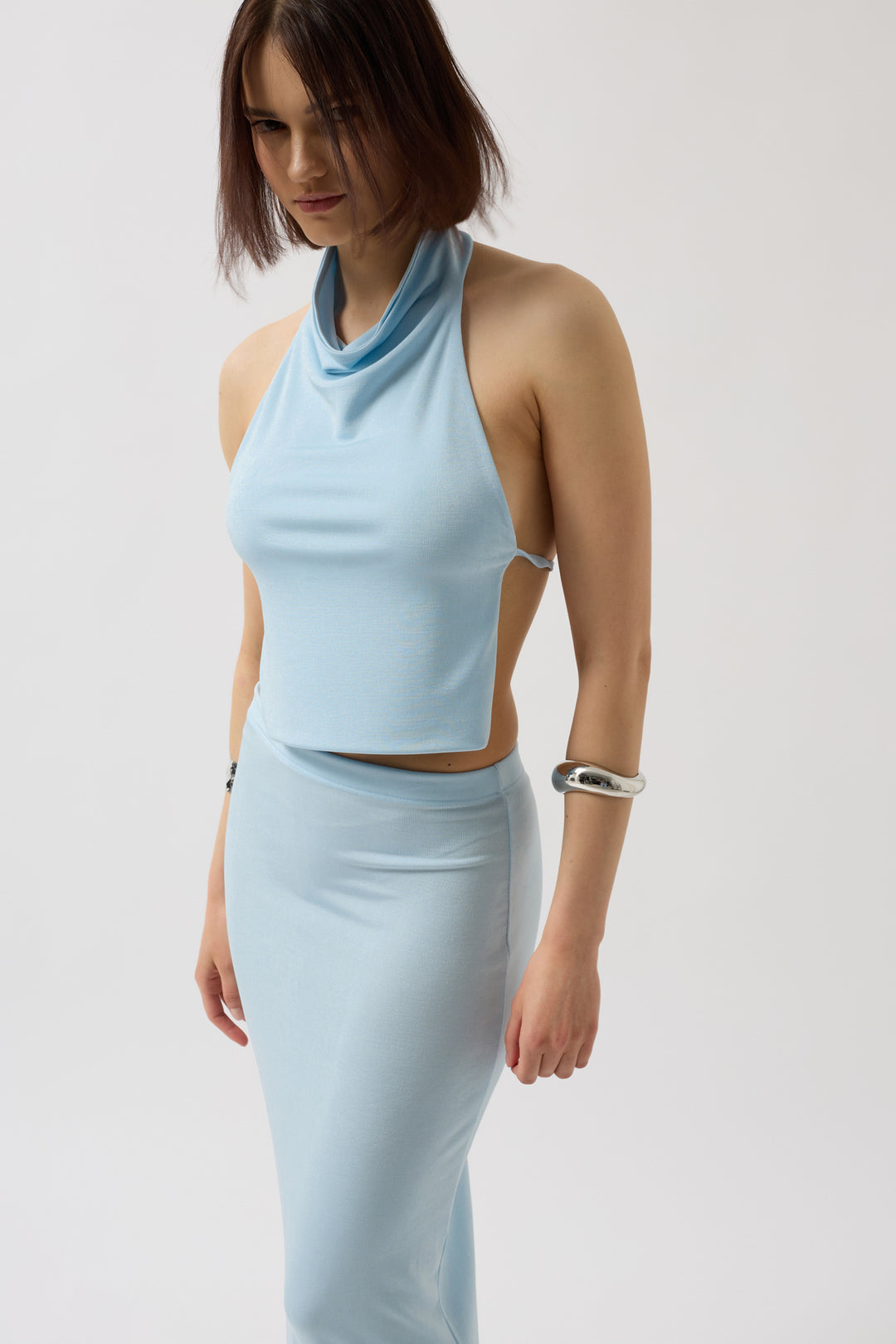 Yarım Balıkçı Sırt Dekolte Crop Bebe Mavi Bluz