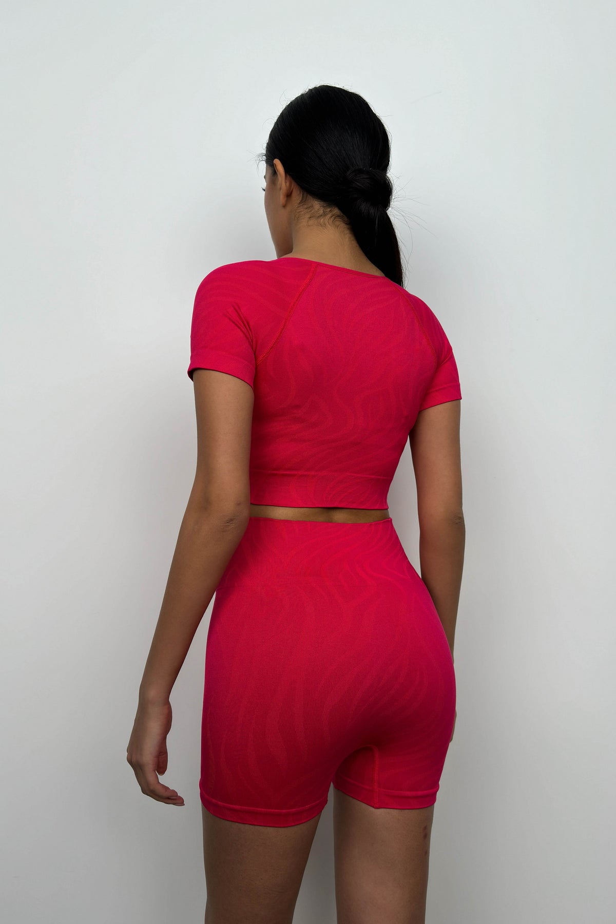 Yarım Kollu, Sıfır Yaka, Crop Top ve Elastik Bel Bantlı, Toparlayıcı, Bisikletçi, Şort Tayt