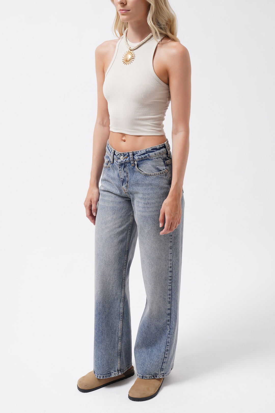 Yıkama Detay Yüksek Bel Mavi Jean