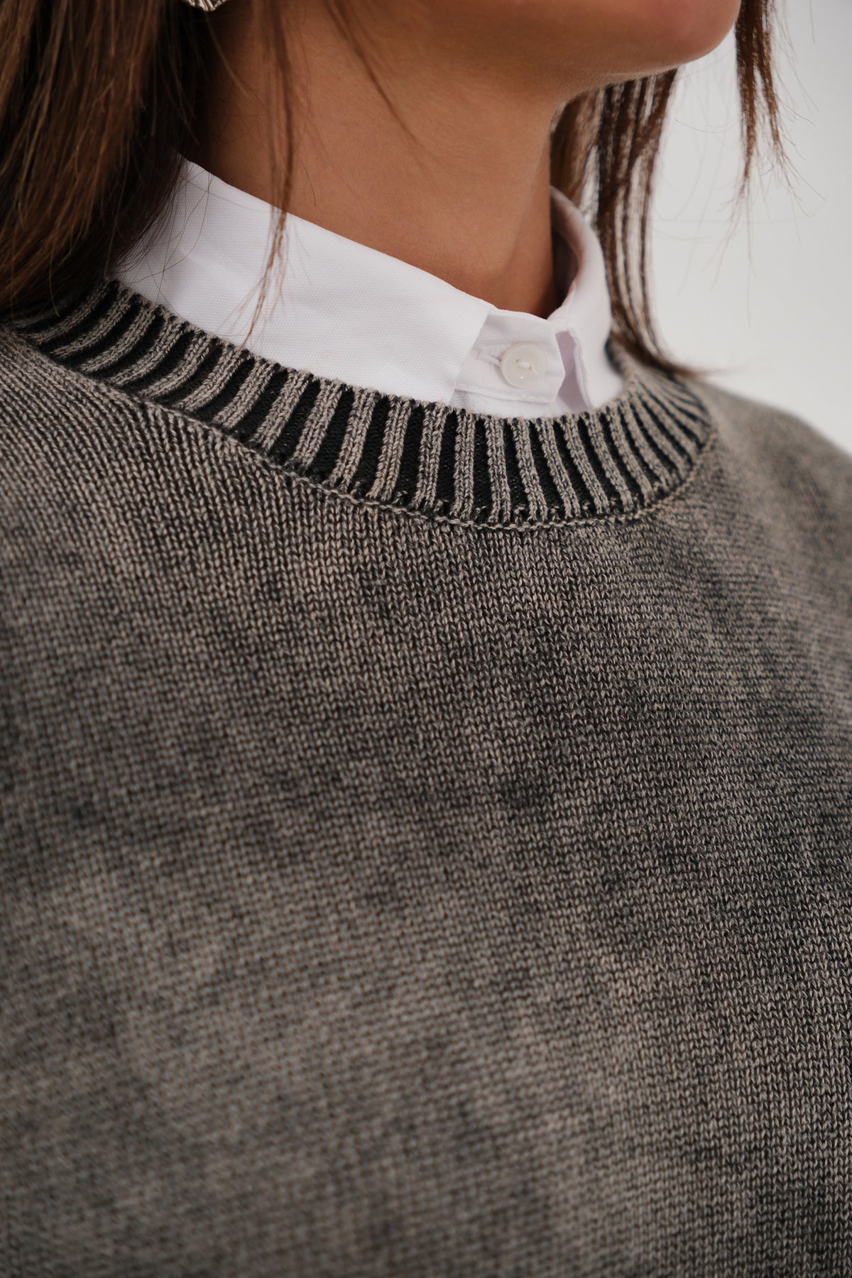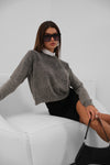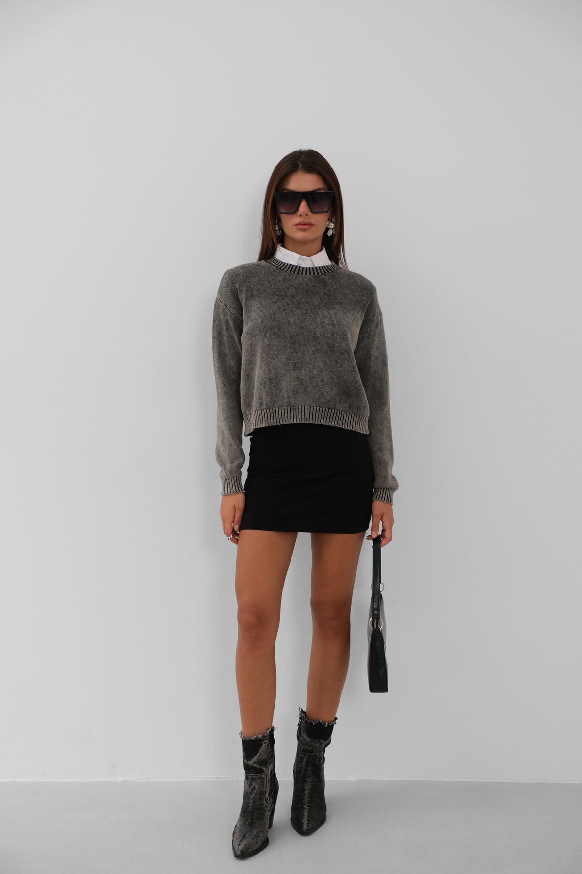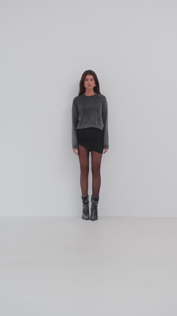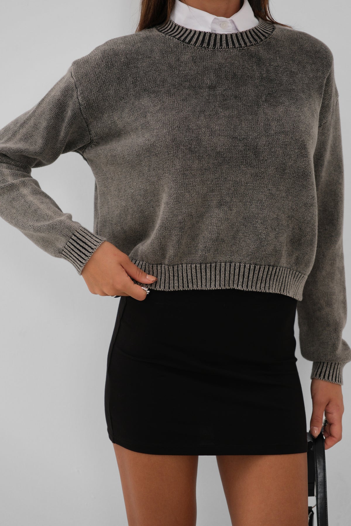 Yıkamalı Crop Koyu Gri Triko Kazak
