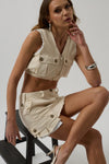 Püsküllenmiş Etek Ucu, Asimetrik Cepli, Düğmeli, Kargo Cepli Mini Etek