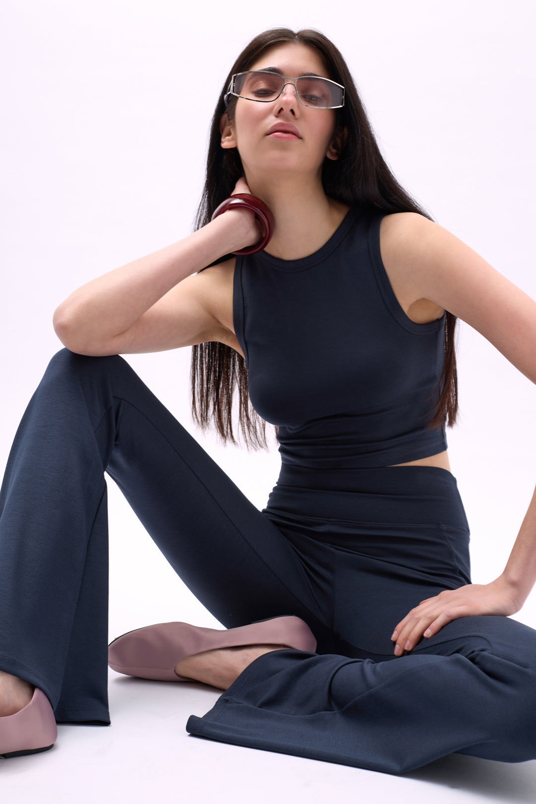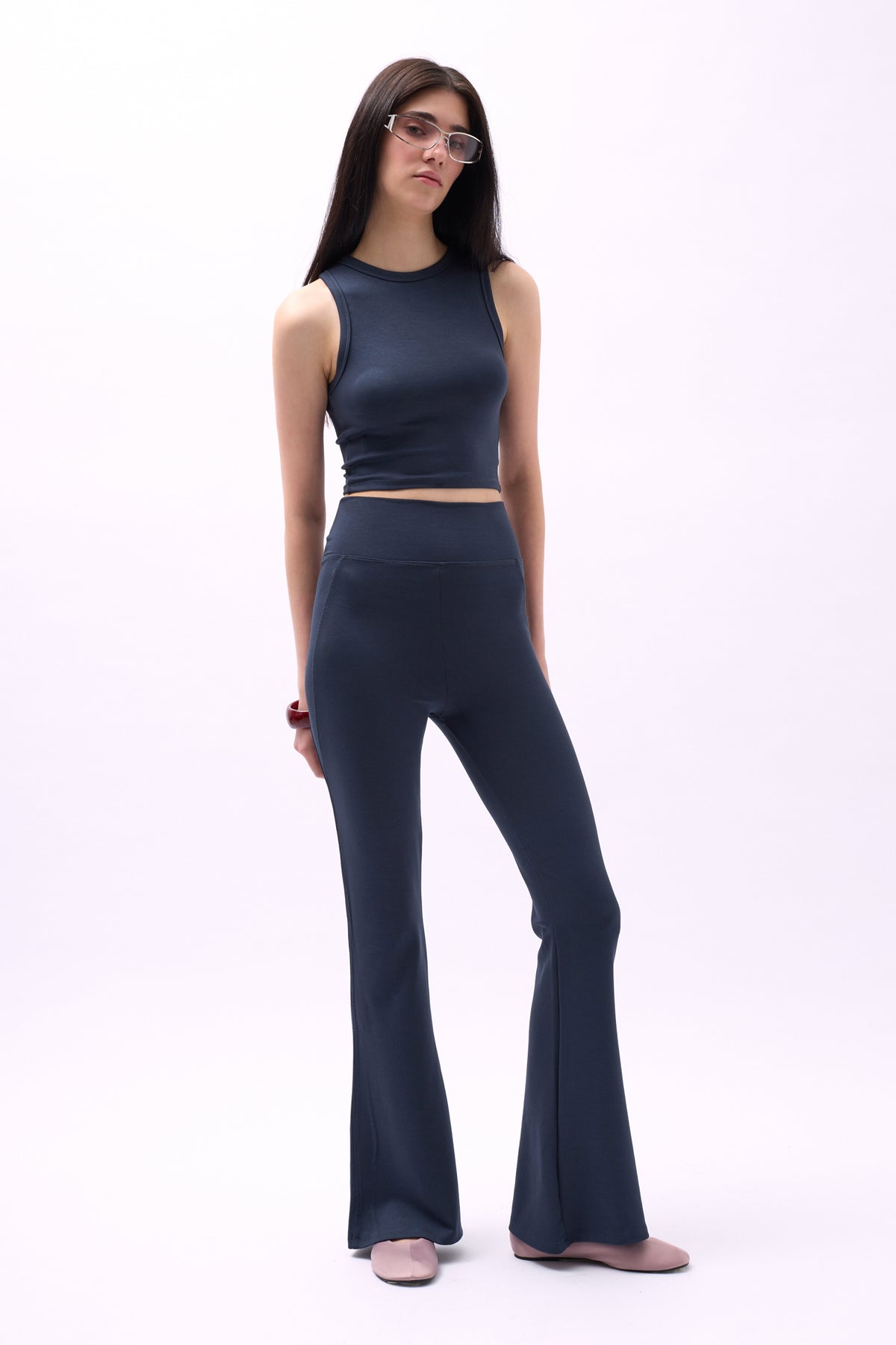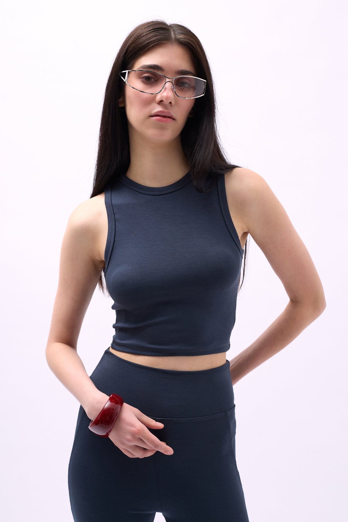 Yüzücü Yaka Crop Antrasit Bluz